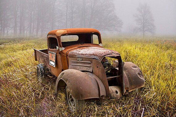 Rusty Pickup Truck For Sale With The Morning Fog In A Grassy Etsy